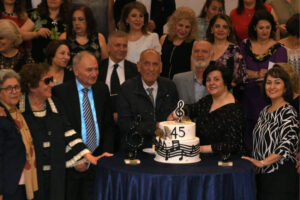 Ապա միութեան վարչութեան նախագահ Հայկազ Շիրւանեանի եւ Արւեստից բաժանմունքի նախագահ Արփի Ալավերդեանի ձեռամբ յուշանւէրներ յանձնւեցին երգչախմբի հիմնադիր խմբավար Տիգրան Սուքիասեանին, ներկայ խմբավար Լուսինէ Միքայէլեանին, հիմնադիր դաշնակահար լուսահոգի Սերոժ Գէւորգեանին փոխարինող Ռուբէն Արզումանեանին, ներկայ դաշնակահար Էնջելինա Ղարիբեանին եւ երկար տարիներ երգչախմբի կողքին կանգնած ձայնավարժութիւն ուսուցանող եւ երգչուհի Ժենիկ Պետրոսեան-Սուքիասեանին։ Շնորհակալական խօսքերով եւ գնահատումներով յիշատակւեց երգչախմբի հետ համագործակցութիւն ունեցած խմբավարներ՝ Էլպիս Մասեհեանի, Վրէժ Մելիքեանի, դաշնակահարներ՝ Սաքօ Ղարիբեանի, Ռեբեկա Աշուղեանի, Կարէն Մեհրաբեանի, Լուիզա Աւետիսեանի, Արգամ Վարդանեանի, Միգանուշ Գալստեանի եւ Անի Ղարիբեանի անունները,որոնցից ոմանք գտնւում են Հայաստանում կամ արտերկրում։