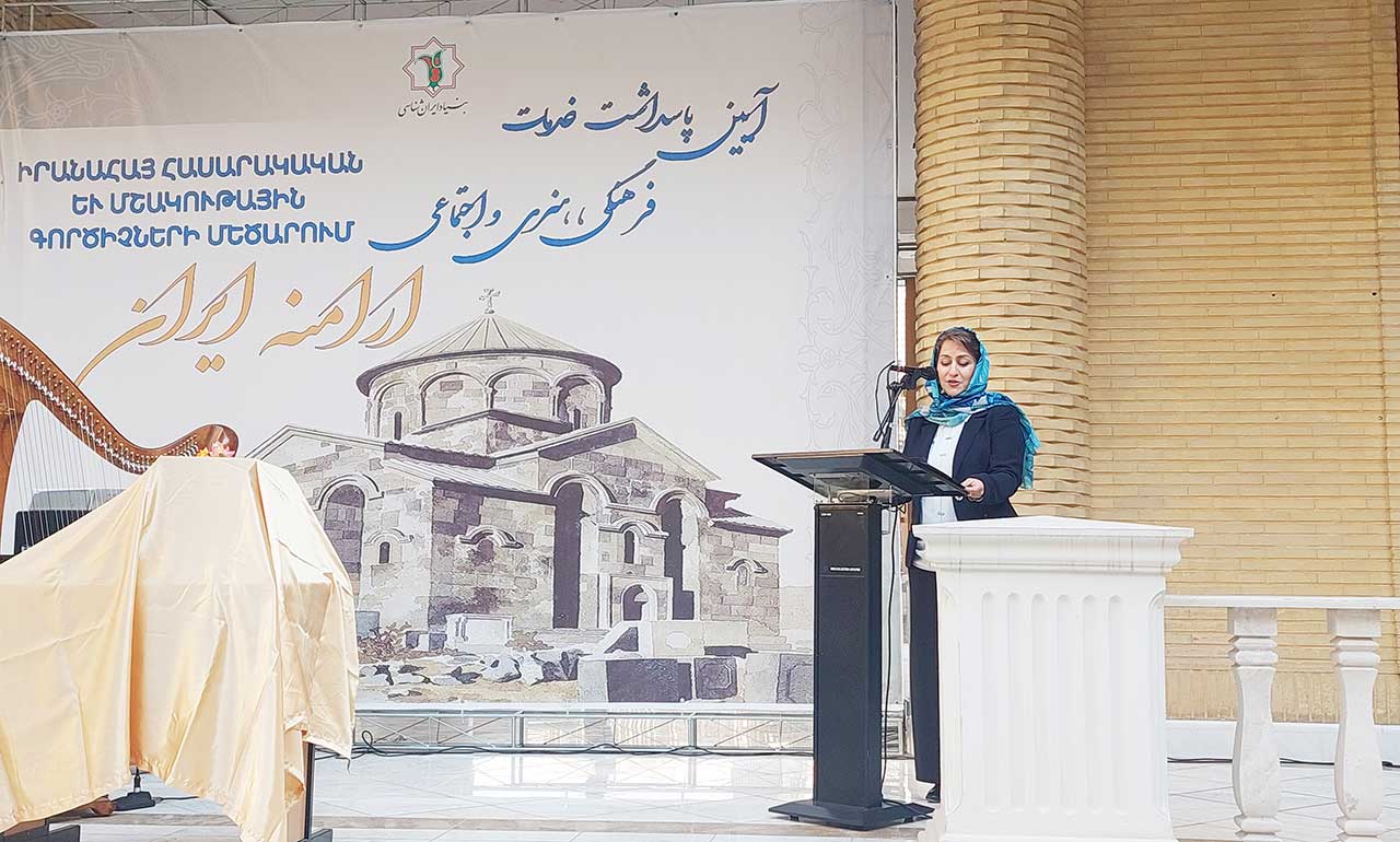 Բացման եւ ողջոյնի խօսքով, ինչպէս նաեւ հաղորդավարութեամբ հանդէս եկաւ Արփի Ալավերդեանը, պարսկերէնով ասմունքելով Պարոյր Սեւակից մի բանաստեղծութիւն: Իր ելոյթի ընթացքում հաղորդավարը ընդգծեց, որ հայերը եւ իրանցիները ունեն բազմաթիւ ընդհանրութիւններ՝ ծէսերի, սովորութիւնների ու մշակութային ասպարէզներում, եւ խաղաղ գոյակցութեան արդիւնքում ստեղծւել են արժէքաւոր կոթողներ:
