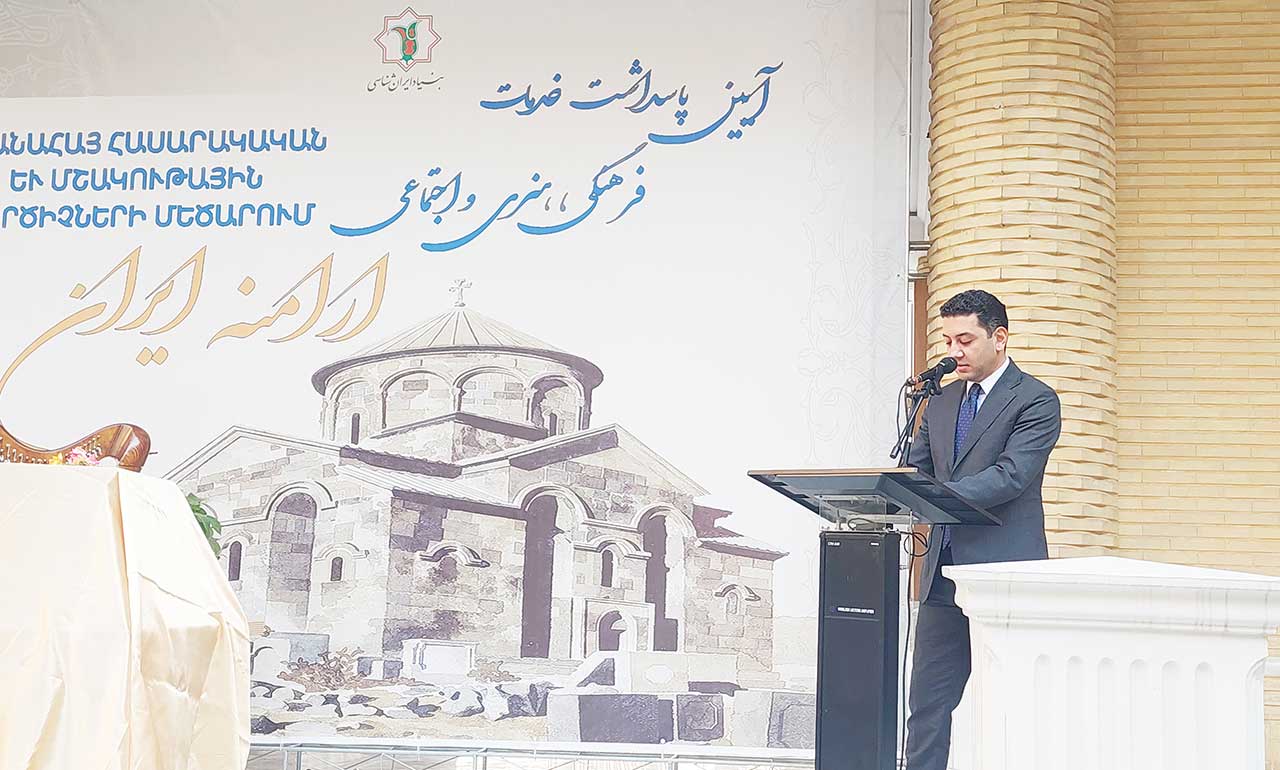 Իր խօսքը փոխանցեց նաեւ Իրանի Իսլամական խորհրդարանում Թեհրանի եւ հիւսիսային իրանահայութեան պատգամաւոր Արա Շահվերդեանը: Իր ելոյթի ընթացքում պատգամաւորը կարեւորութեամբ անդրադարձաւ հայ եւ իրանցի ժողովրդի դարաւոր խաղաղ գոյակցութեանն ու փոխյարաբերութեանը եւ նշեց. «Իրանի հետ կապերի հէնց առաջին իսկ օրւանից իրանահայերը այս երկրում ոչ թէ իրենց համարել են օտարերկրացիներ, այլեւ Իրանի մեծ ընտանիքի անդամը, եւ չեն խնայել իրենց կարելին երկրի վերելքի եւ տարածքային ամբողջականութեան պահպանման ճամբին»: Պատգամաւորն ընդգծեց, որ Իրանում, հայերը բազմաթիւ բնագաւառներում եղել են առաջինները, ինչպէս Իրանի աստղաֆիզիկայի մայրը՝ Ալենուշ Տէրեանը, Իրանի ռոբատիկի հայրը՝ Կարօ Լուկասը, կամ տպագրութեան ու արւեստի ոլորտներում: