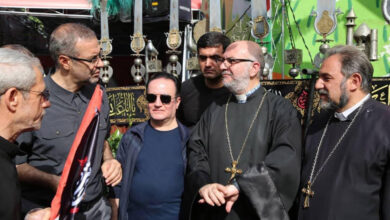 حضور روحانیون و اعضای شورای خلیفهگری ارامنه تهران در مراسم وداع با شهدای جنگ تحمیلی