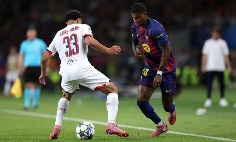 بارسلونا بازی را پرانرژی و هجومی آغاز کرد و خیلی زود مزد برتری خود را گرفت؛ جایی که در دقیقه ۲۰، مارکوس رشفورد با یک پاس هوشمندانه فران تورس را در موقعیت گل قرار داد و دروازه پاریسیها فرو ریخت.